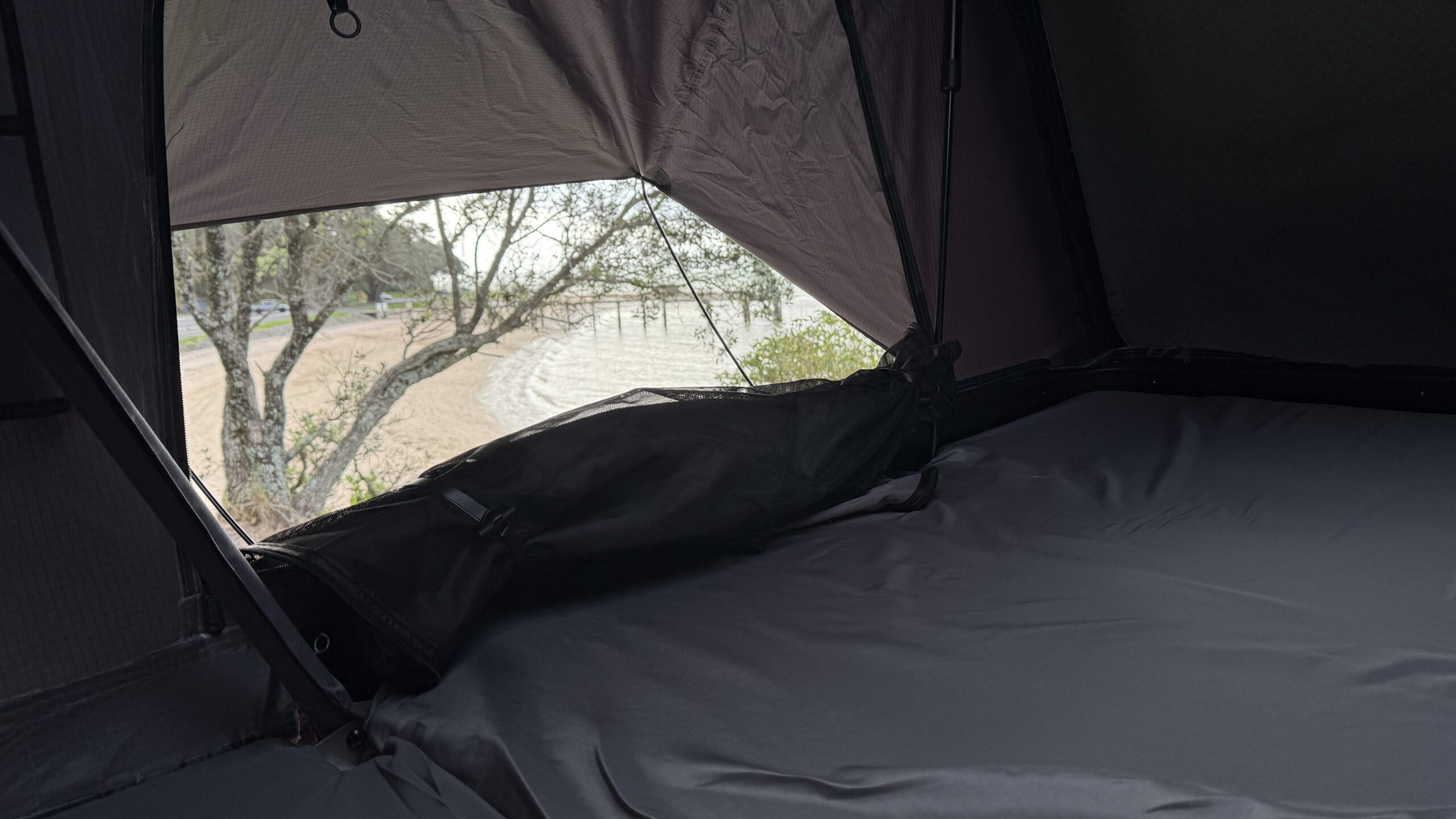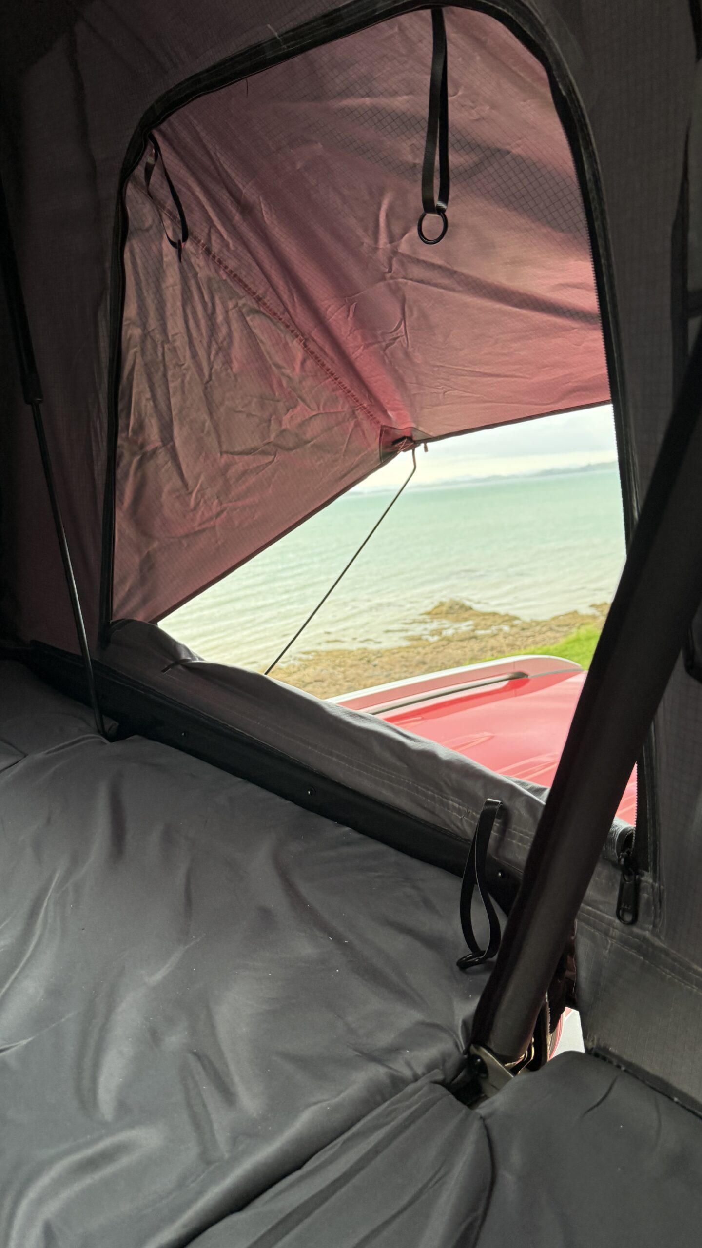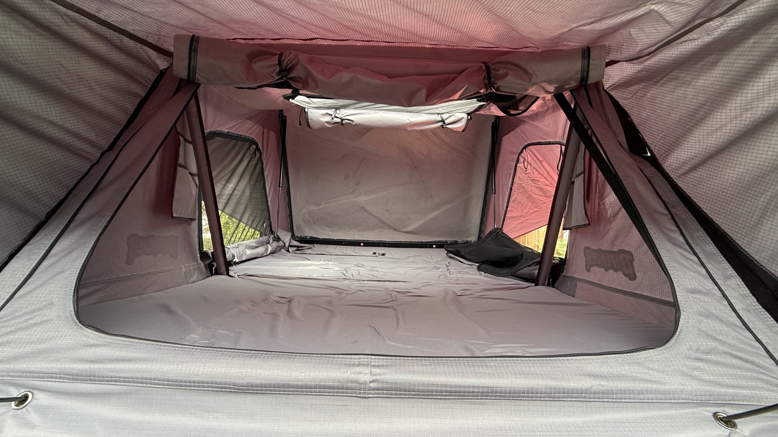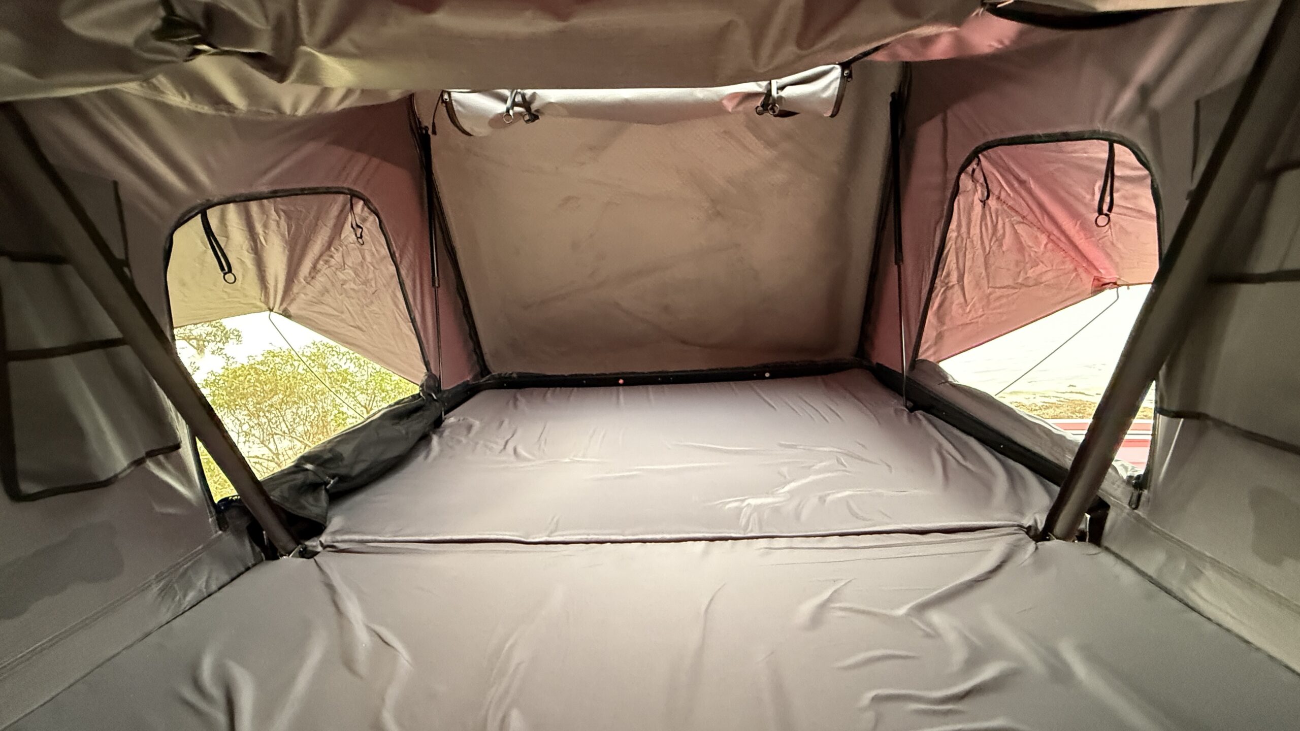 • Defender Off-Road Cantilever Hardshell Dachzelt: Schnell aufbaubares Dachzelt mit Insektenschutz, Dachfenster, LED-Beleuchtung und hochdichter Matratze – Schlafplätze für 2 Erwachsene + 1 Kind (ca. 215 cm x 165 cm)